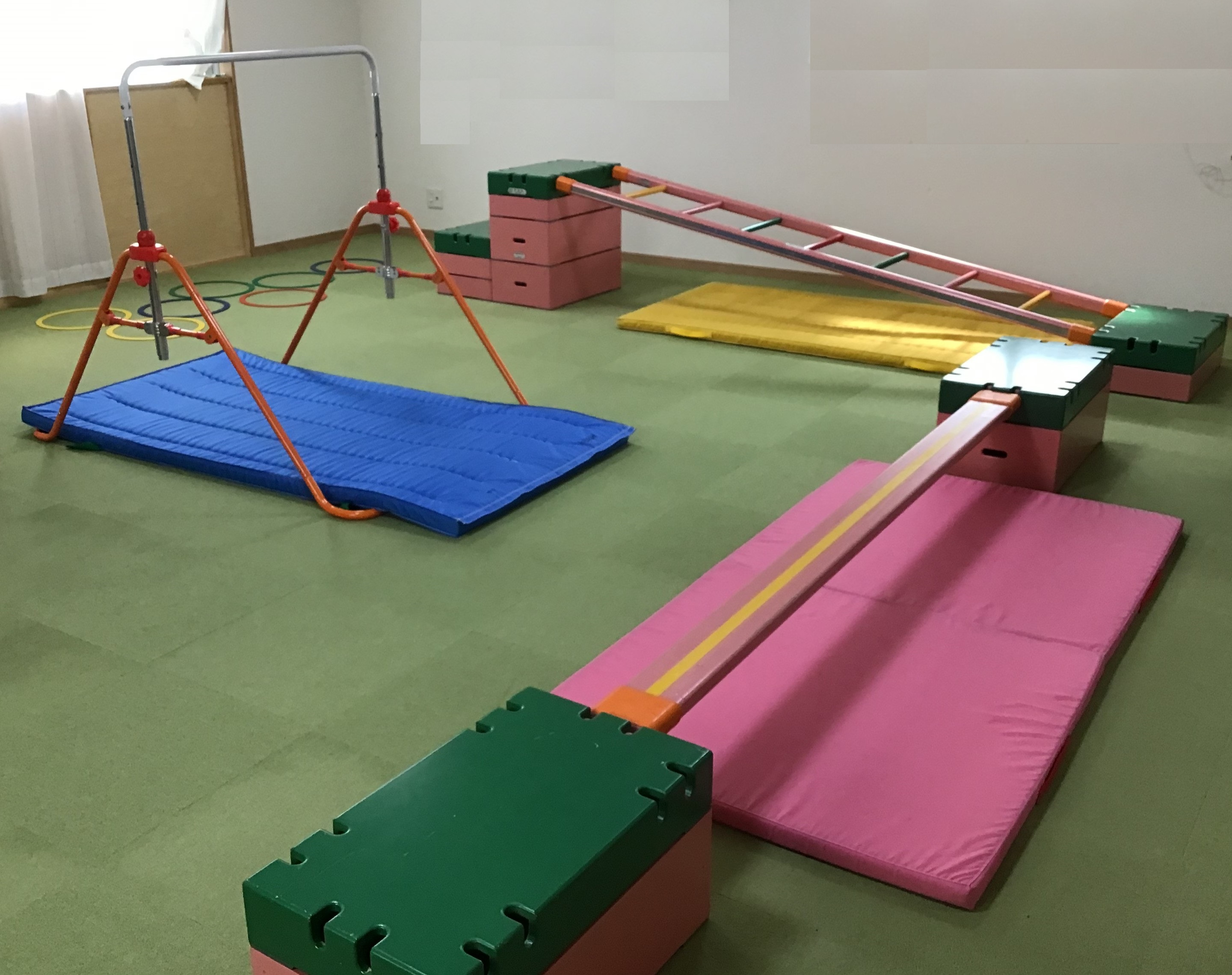 | 14:20 登所、はじまりの準備、排泄 自由あそび 14:40 はじまりの会 14:50 設定保育 15:20 排泄、手洗い 15:30 おやつ 15:50 おわりの会 16:00 降所 |